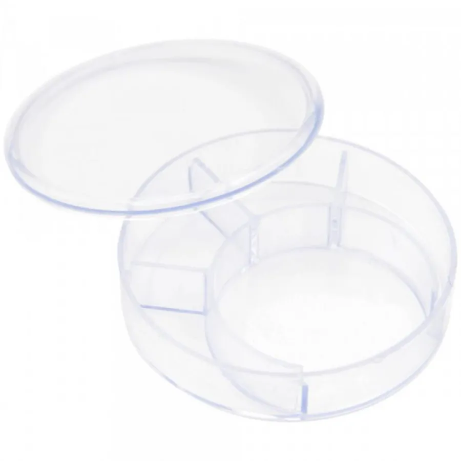C’est une boîte de rangement circulaire fabriquée en plastique transparent. Mesurant 75 mm de diamètre, elle possède 5 compartiments, dont un plus grand pour y déposer le mouvement de montre facilement par exemple. C’est un accessoire de rangement essentiel lors de réparations sur le boîtier afin de ne perdre aucun élément de la montre pendant sa manipulation. Avec 5 compartiments distincts, cette boîte de rangement pour pièces détachées de montre est idéale pour ranger des petits éléments tels que les vis, les roues, les stems, les aiguilles, etc. Chaque compartiment dispose de suffisamment d’espace pour accueillir un grand nombre de pièces, limitant ainsi le risque de perte des éléments d’une montre. Ayez à portée de main, toutes les pièces nécessaires pendant votre réparation de montre avec cette boîte de rangement ! Grâce à son couvercle en plastique transparent, la visibilité des éléments rangés à l’intérieur est claire, sans avoir à ouvrir la boîte de rangement.